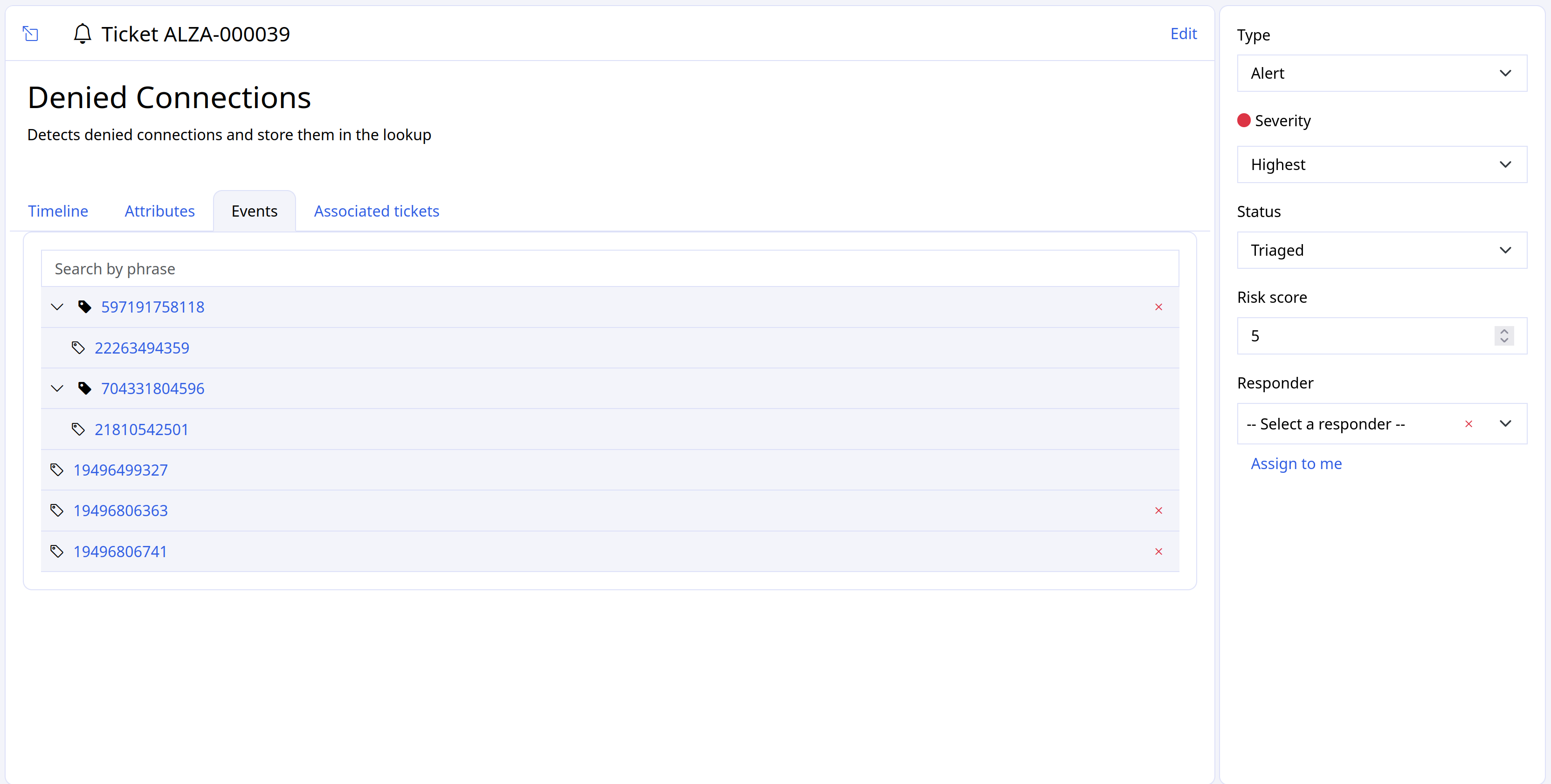 Úplná hierarchie přímo přiřazených událostí a událostí z vnořených tiketů.