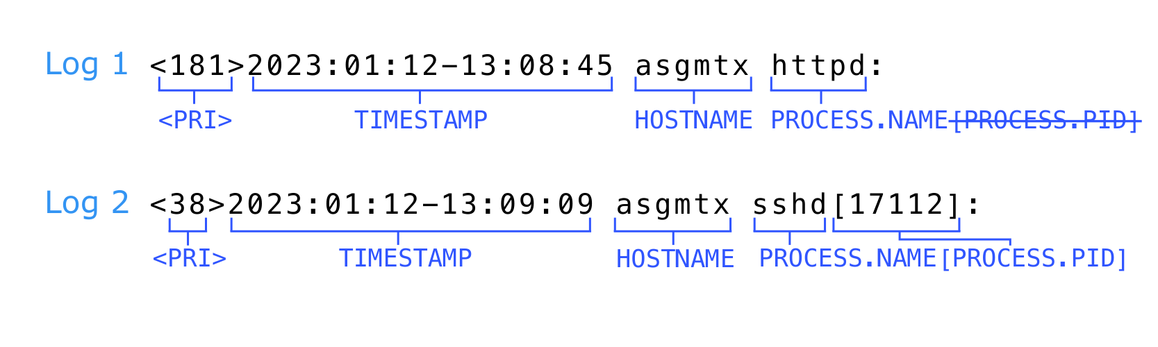 <PRI>TIMESTAMP HOSTNAME PROCESS.NAME[PROCESS.PID]: